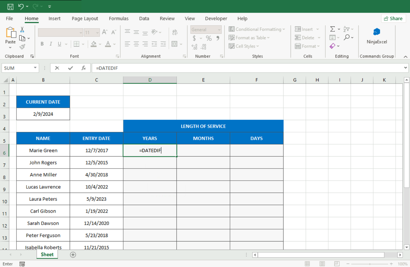 Solution: DATEDIF is a "hidden" function in Excel; it doesn't appear in the standard catalog or show a tooltip. You must type it manually: =DATEDIF(start_date, end_date, unit). Ensure your unit arguments (like "Y", "YM", "MD") are always in double quotes.