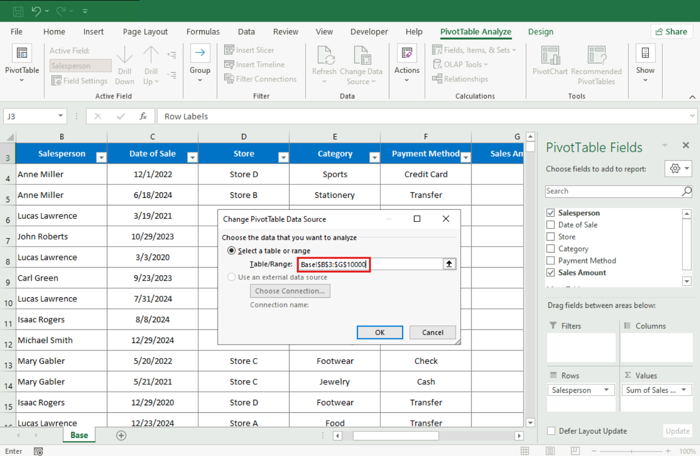 Problem: If I add new rows, the Pivot Table doesn't include them even after a refresh.