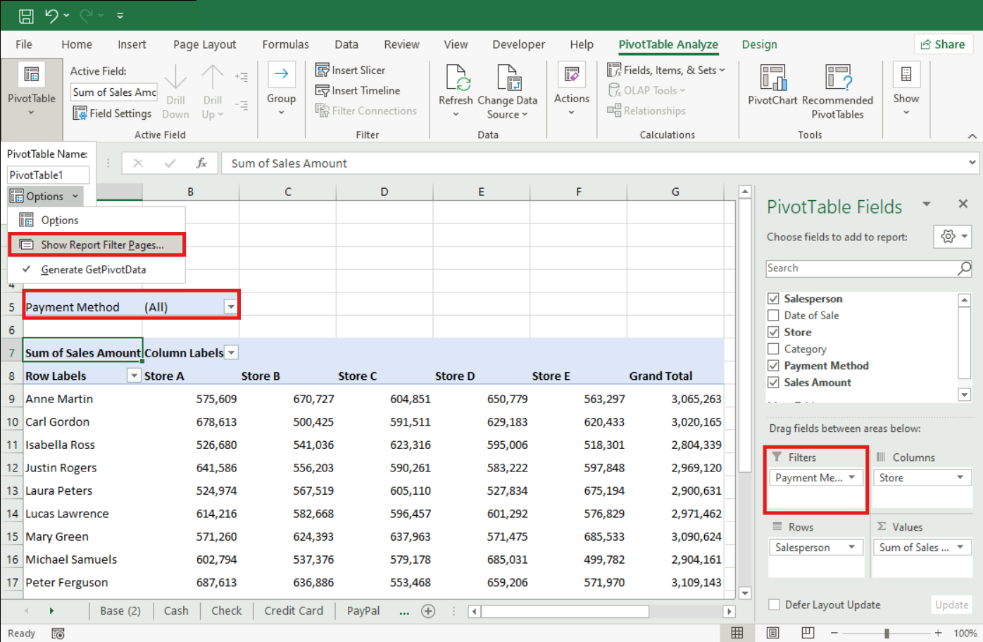Problem: The "Show Report Filter Pages" option is grayed out.