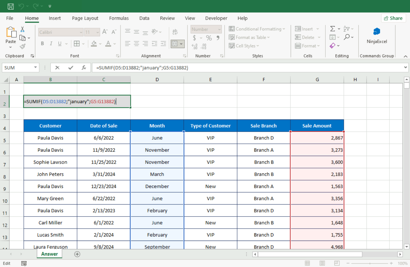 SUMIF: Designed to sum based on a single criterion. For example, if you have a table with "Salesperson," "City," and "Sales Amount," you can calculate the total for just one specific salesperson.