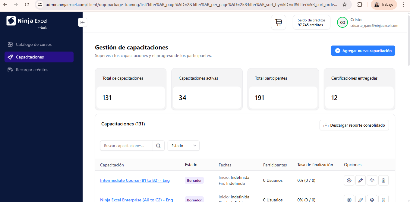 Desde el Perfil Administrador de Ninja Excel, los administradores pueden acceder a los diplomas de los