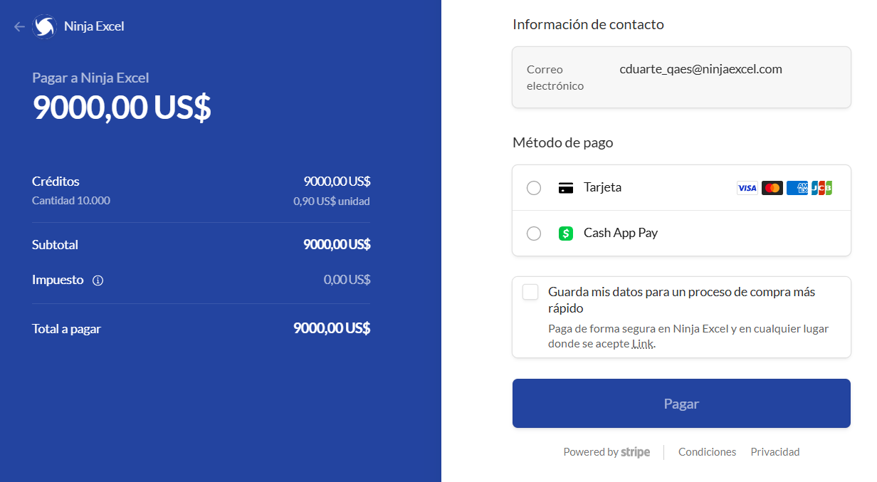 Los pasos anteriores te redirigirán a la pasarela de pago de Stripe. Acá podrás seleccionar los métodos de pago que ofrece Stripe y luego presionar “Pagar” para finalizar. Una vez realizado el pago, recibirás un mensaje de confirmación. Si no recibes este mensaje, no te preocupes. Te recomendamos volver a intentarlo y, si persisten los inconvenientes, contáctanos a través del Chat de Ayuda para que te asistamos.