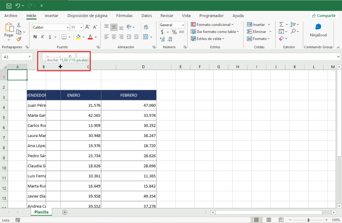 Autoajuste: Haz clic en el borde derecho de la letra de la columna para que Excel ajuste el ancho automáticamente según el contenido.