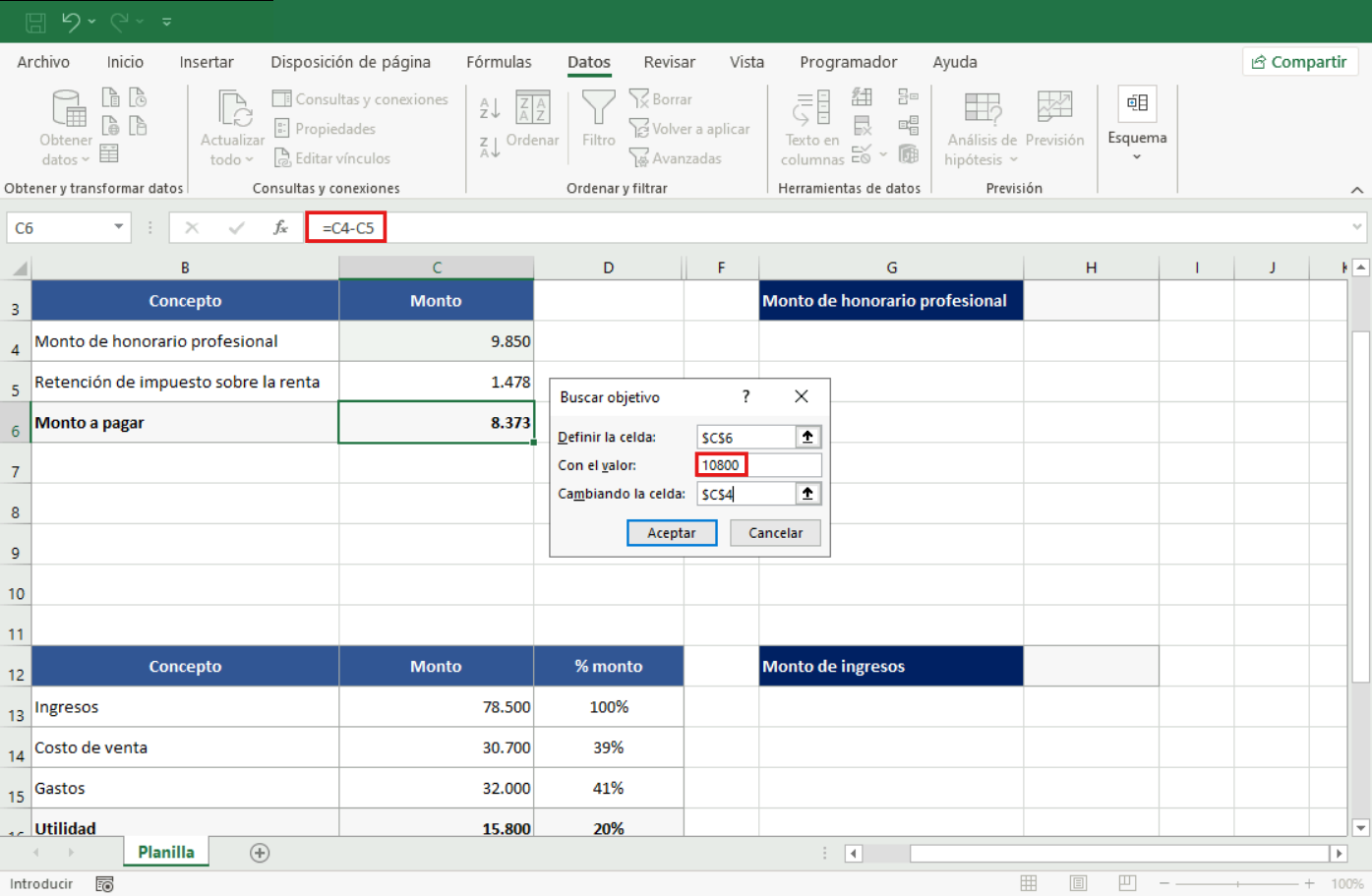 Problema: Buscar Objetivo me indica que "la celda debe contener una fórmula".